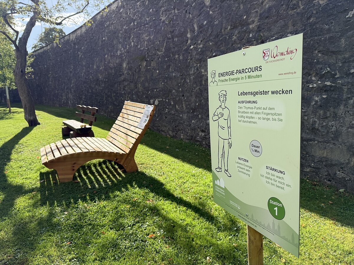 Der Energie-Parcours im historischen Stadtgraben Wemdings lässt sich mit einem Trimm-Dich-Pfad für Körper, Geist und Seele vergleichen: Während klassische Pfade die körperliche Fitness stärken, geht es hier um innere Balance. Er basiert auf acht einfachen neuro-energetischen Übungen, die innerhalb weniger Minuten durchgeführt werden können.